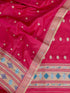 Add a vibrant touch to your wardrobe with this Candy Apple Red Paithani suit set. Expertly handwoven, it features the rich texture and intricate motifs characteristic of traditional Paithani weaving. The three-piece unstitched set includes a top, bottom, and matching dupatta, offering the flexibility to tailor it to your style.